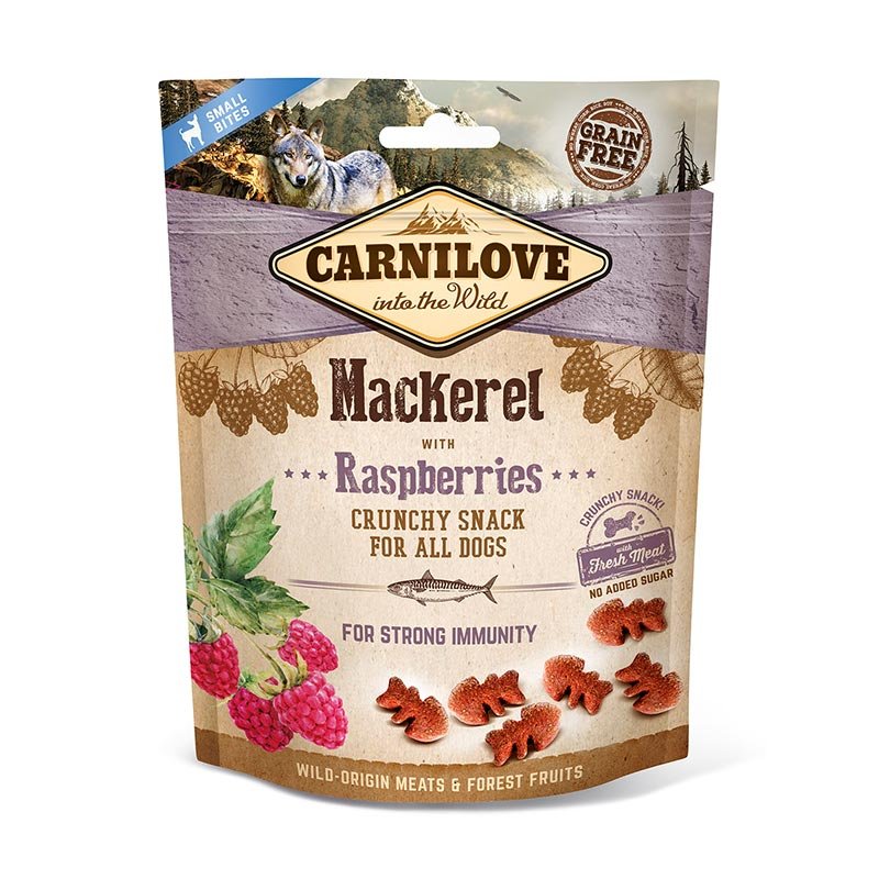 חטיף קארנילאב מקרל ופטל (200 גרם בקופסה) משלב בשר מקרל עשיר באומגה 3 עם פטל טבעי, מקור לנוגדי חמצון התומכים במערכת החיסון.
