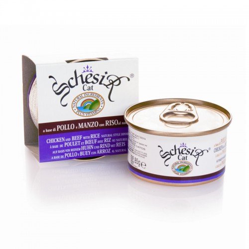 שזיר לחתולים עם נתחוני עוף ובקר ואורז במים