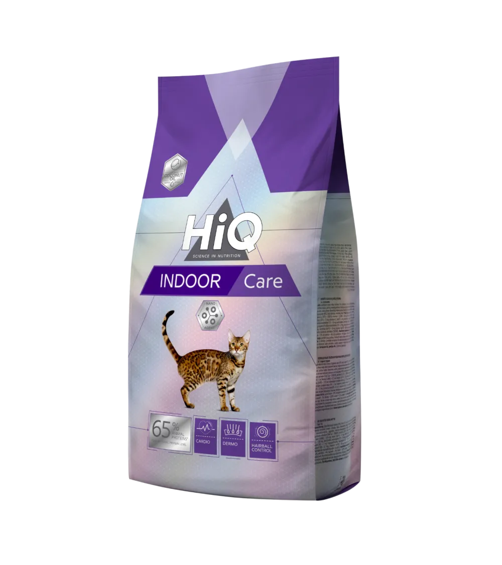 HIQ Indoor Care פותח במיוחד עבור חתולים בוגרים החיים בבית, שלהם צרכים שונים מחתולי חוץ: פעילות נמוכה יותר, נטייה לכדורי שיער ורגישות עיכול שכיחה יותר.