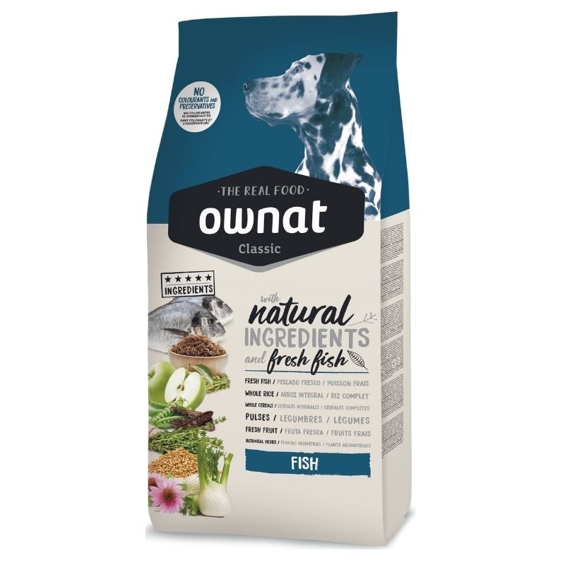 OWNAT קלאסיק דגים מתאים לכלבים בוגרים מכל הגזעים, כולל בעלי קיבה רגישה או אלרגיות למקורות חלבון אחרים.