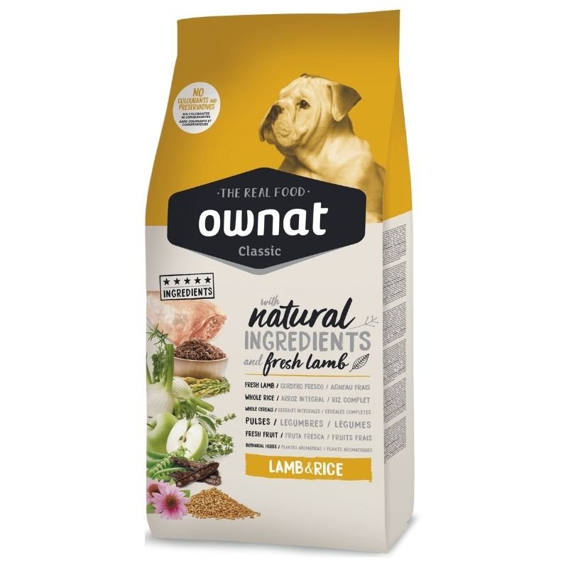OWNAT קלאסיק כבש ואורז מעניק לכלבך תזונה מאוזנת וטעימה המבוססת על רכיבים טבעיים ואיכותיים.